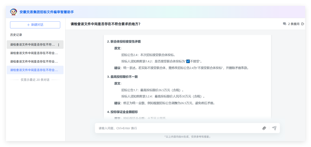 近日,安徽公共资源交易集团自主研发并在业内率先发布基于DeepSeek满血版的AI招标文件编审系统,同步上线智能问答系统。超70 ......