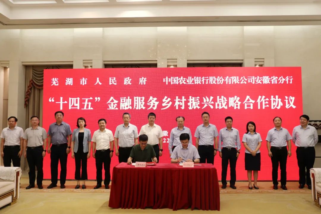 7月26日,芜湖市政府与中国农业银行安徽省分行举行“十四五”金融服务乡村振兴战略合作签约协议。市委书记单向前,市委副书记 ......