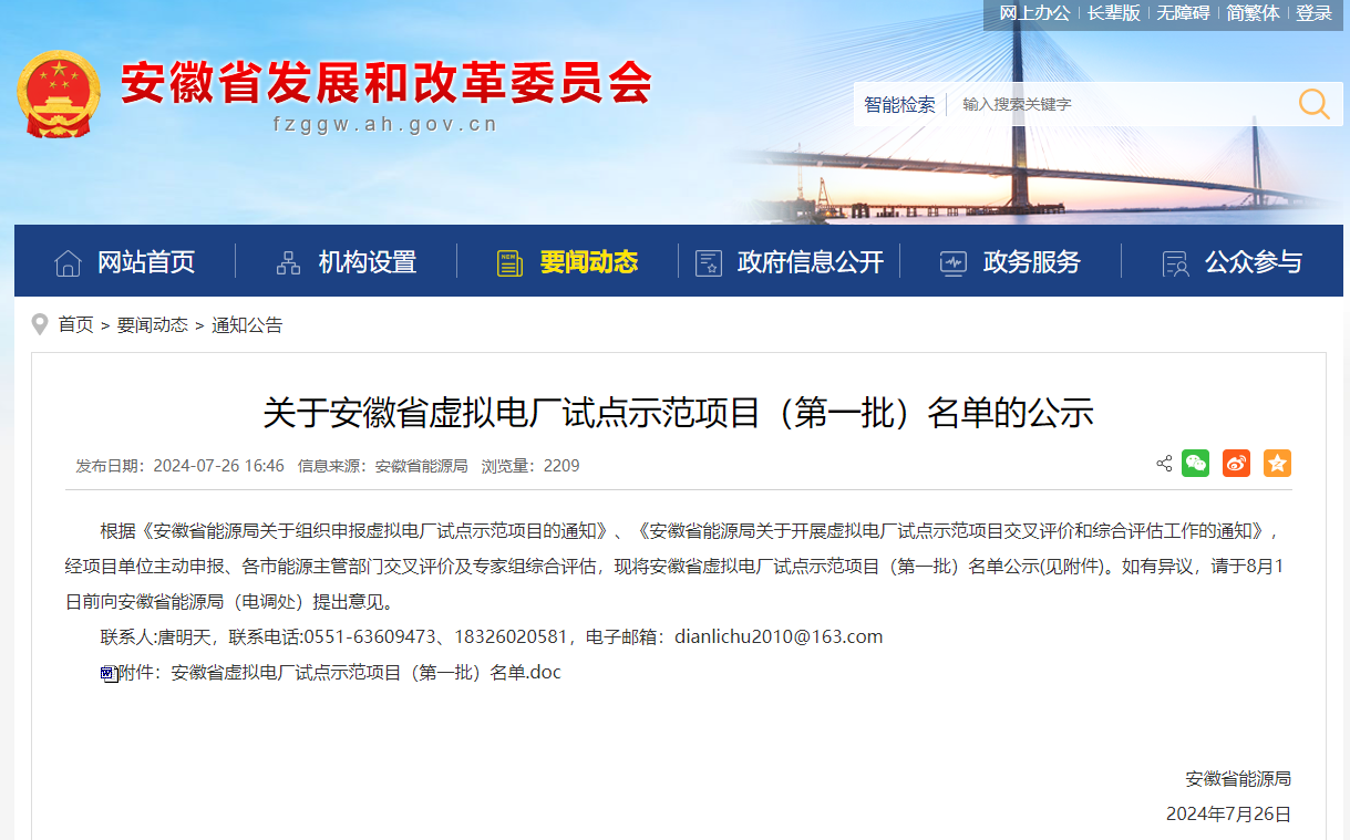 根据《安徽省能源局关于组织申报虚拟电厂试点示范项目的通知》、《安徽省能源局关于开展虚拟电厂试点示范项目交叉评价和综合 ......