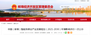 中国(蚌埠)智能传感谷产业发展规划(2021-2030)环境影响评价一次公示