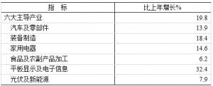 年末全市规模以上工业企业2219户。其中,产值超亿元企业859户、比上年增加93户,超百亿元企业13户,超500亿元企业2户、增加1户。全年规模以上工业增加值比上年增长19.6%。分经济类型看,国有企业增长3.5%,股份制企业增长22.4%,外商及港澳台商投资企业增长15.6%。分行业看,37个工业大类行业有28个增加值保持增长。六大主导产业增加值比上年增长19.8%,占规模以上工业的66.6%,其中平板显示及电子信息产业增长32.4%、装备制造产业增长18.4%。规模以上工业出口交货值比上年增长37.1%。