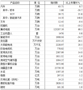 规模以上工业统计的主要产品产量中,集成电路比上年增长68.5%,变压器增长26.1%,太阳能电池增长20.5%,微型计算机设备增长18.6%,新能源汽车增长1.5倍。