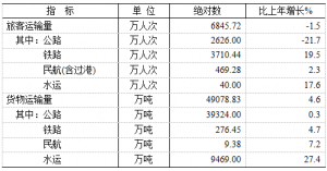 全年旅客运输量0.68亿人次,下降1.5%;货物运输量4.91亿吨,增长4.6%。全年港口货物吞吐量4281.95万吨,增长18.6%,其中外贸货物吞吐量48.79万吨,增长2.5%。合肥新桥机场旅客吞吐量879.54万人次,增长2.3%。