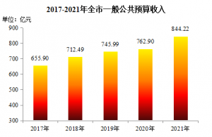 全年一般公共预算收入844.22亿元,比上年增长10.7%;其中税收收入638.82亿元,增长11.9%。一般公共预算支出1223.72亿元,增长5.1%;其中民生支出1062.9亿元,增长6.6%,占全部支出的86.9%,比上年提升1.3个百分点。从重点支出项目看,城乡社区服务支出增长17.5%,科学技术支出增长6.6%,教育支出增长6.4%。