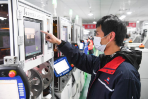 2月8日,在位于重庆璧山区的一家精密制造有限公司,工作人员在生产车间作业